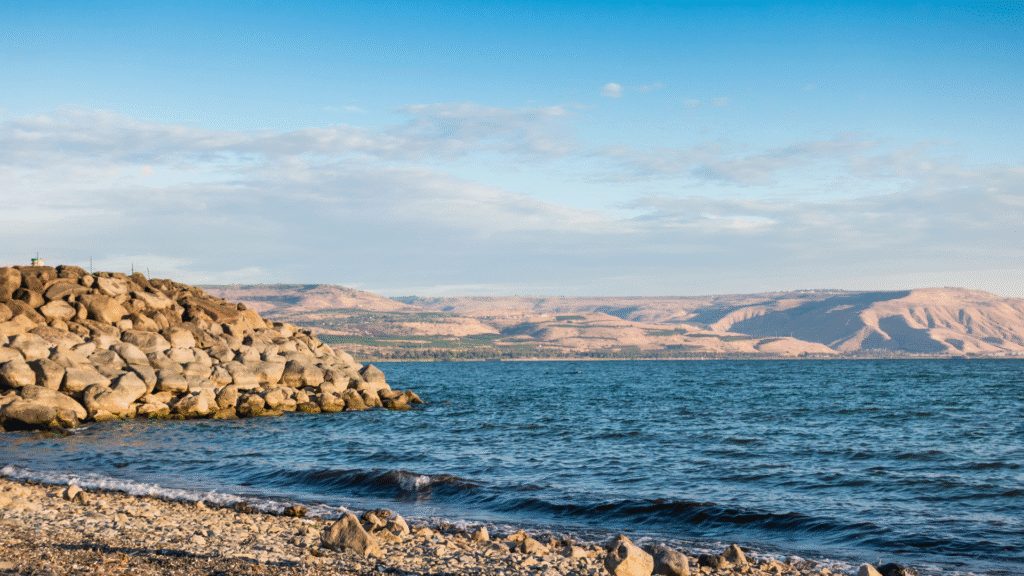 O Mar da Galileia entra como descanso da alma — água serena, horizonte, vento. Você entende por que aqui tantos corações foram tocados.